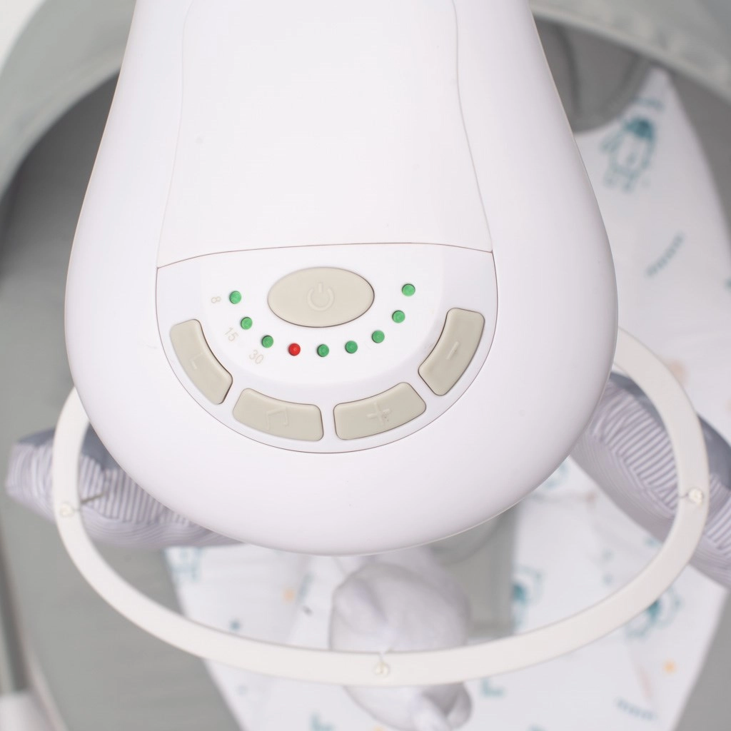 Choose from 4 rocking speeds and set the timer to 8, 15, or 30 minutes—the bouncer will switch off automatically.