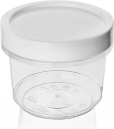 Reliable and versatile round 300 ml container with a white screw-on lid and a transparent body that lets you check contents without opening. Thanks to the quality seal, the box is exceptionally airtight and keeps your food fresher—without the risk of spills during transport.