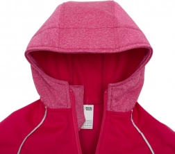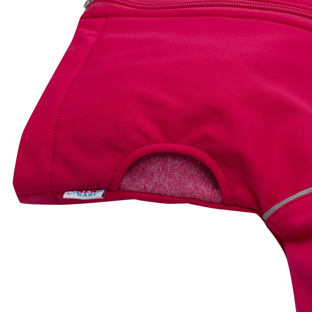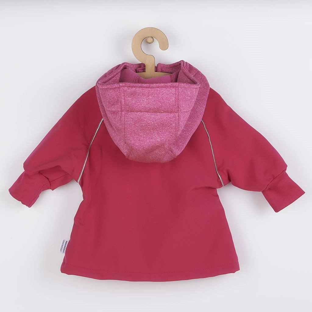 Practical and comfortable softshell jacket for babies from New Baby in a gentle pink color. Offers water resistance, wind resistance, and breathability for everyday wear. Features a full-length zipper with a windproof backing, a warm inner side with short-cut fleece, and a practical hood. Thanks to the elastic cuffs and hem, it fits great, and reflective details on the sleeves increase safety.