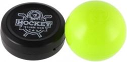 The package includes a plastic hockey stick, puck, and ball for a complete hockey experience.