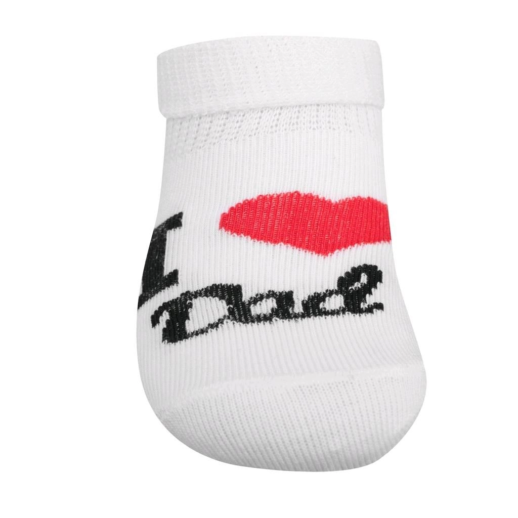 Adorable infant socks with the I ♥ Mum and I ♥ Dad motif keep little feet warm and comfy. Thanks to the soft, stretchy cuff they don’t pinch anywhere, feature a breathable knit, and keep their shape and color thanks to quality material. Ideal for warmer days and everyday wear.