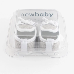 The booties come in a practical box, making them a great gift for a newborn. Materials were chosen with an emphasis on safety and comfort—the synthetic outsole is made of BPA-free PVC.