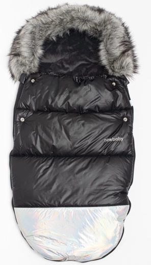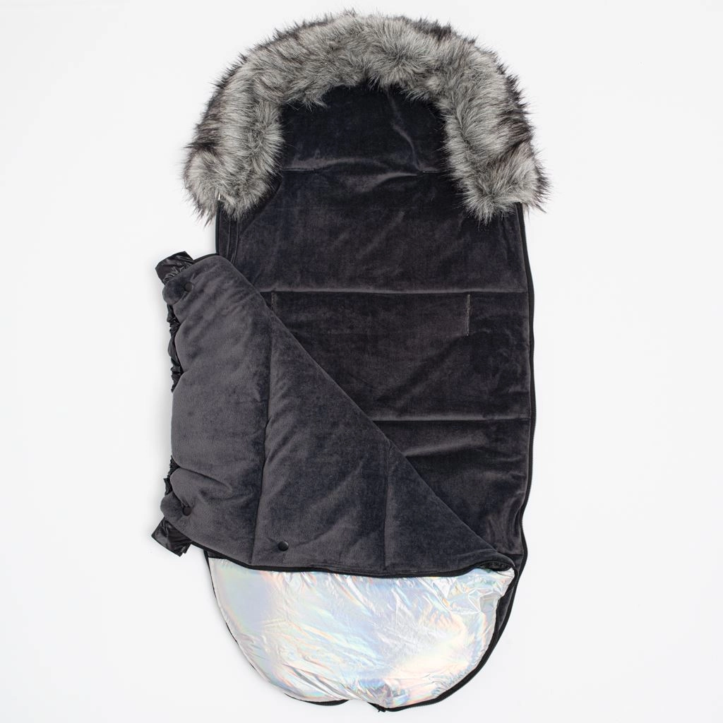 Luxury Winter Footmuff with Faux Fur Shine New Baby – Black–Silver