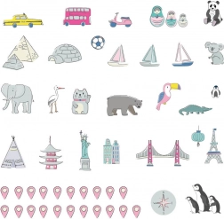 - Continents, oceans, cardinal directions, landmarks and motifs