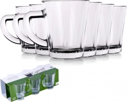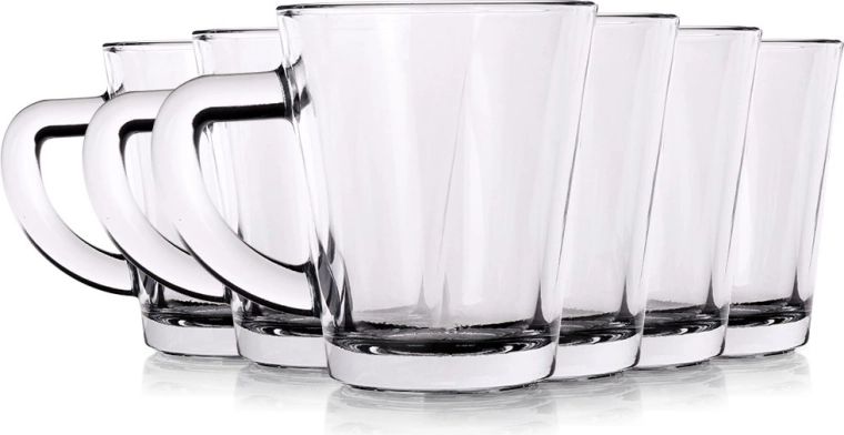 A stylish set of six glass espresso cups with a capacity of 70 ml will delight all coffee lovers. Made of durable, clear glass with a comfortable handle for a secure grip. Thick walls, a classic design, and easy dishwasher care make these glasses a practical choice for both home and professional use.