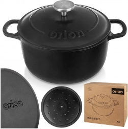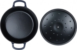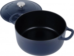 Universal cast iron pot with lid, 5.2 l capacity, for everyday cooking, braising and baking. Thanks to its even heat distribution, long heat retention and resistance up to 250 °C, it handles soups, stews and roasts on the stovetop, in the oven and on the grill. The inner enamelled surface makes cooking and easy cleaning simple, while the robust stainless steel handle on the lid and wide side handles ensure safe handling.
