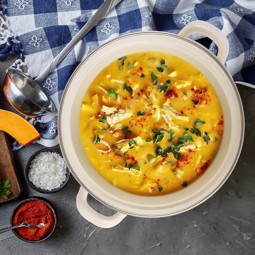 A beloved retro design meets a durable enamelled steel build that is health-safe and gentle for allergy sufferers. The pot is perfect for soups, sauces, and braised dishes, and thanks to its elegant look, it’s also great for stylish serving straight to the table.
