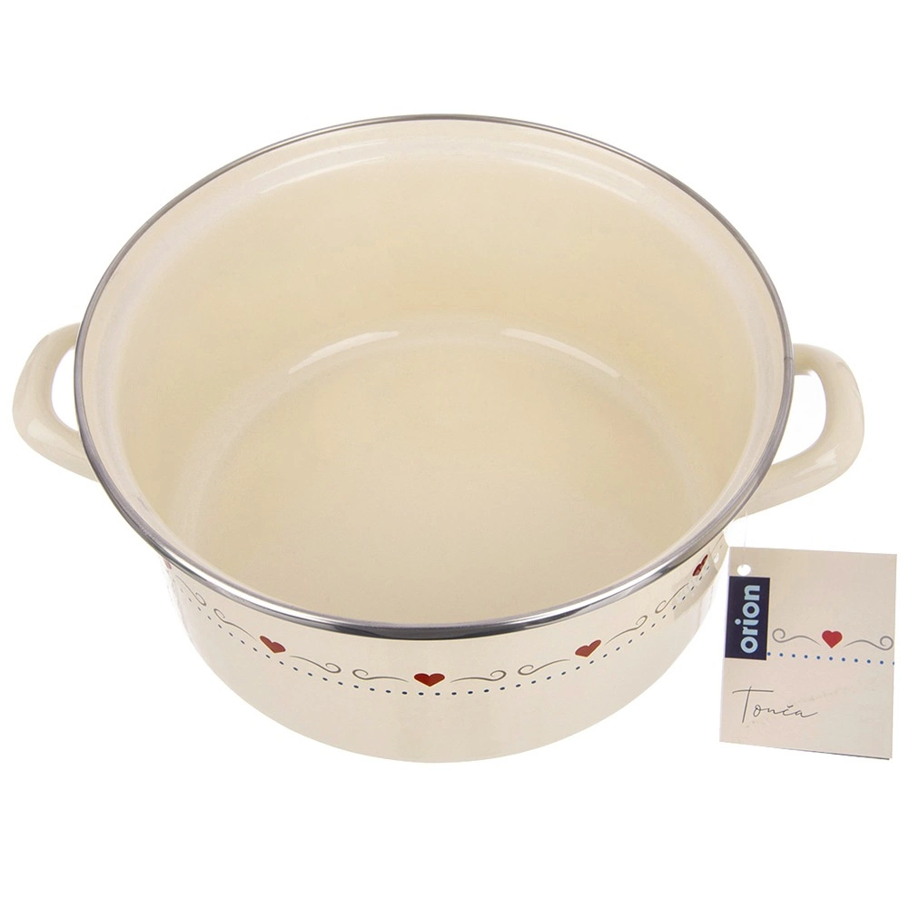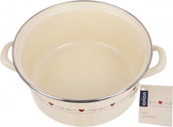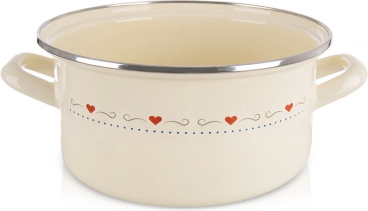 Beloved retro design and practicality in one: the TONCA enamel pot with a diameter of 24 cm and a height of 11 cm is perfect for soups, sauces, and stews. The cream finish with subtle hearts decorates any kitchen, and thanks to the wide opening, stirring and serving are maximally comfortable.