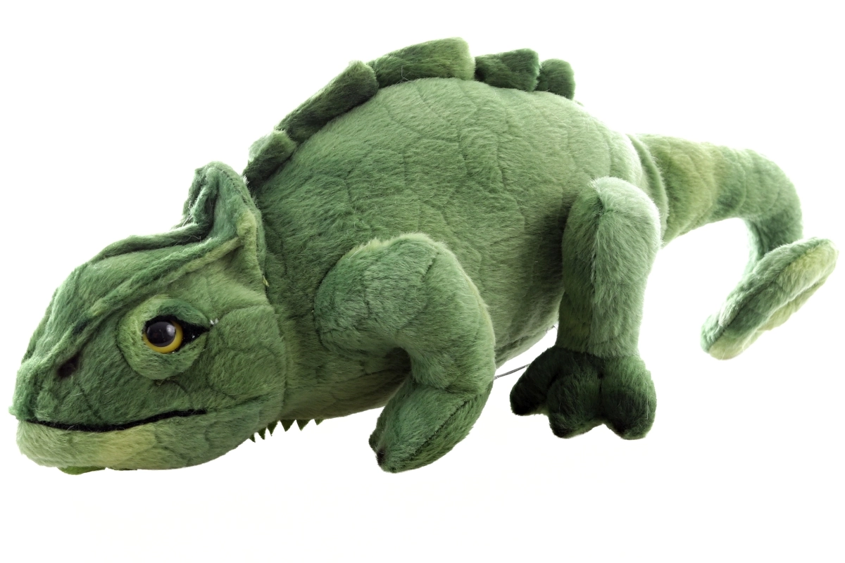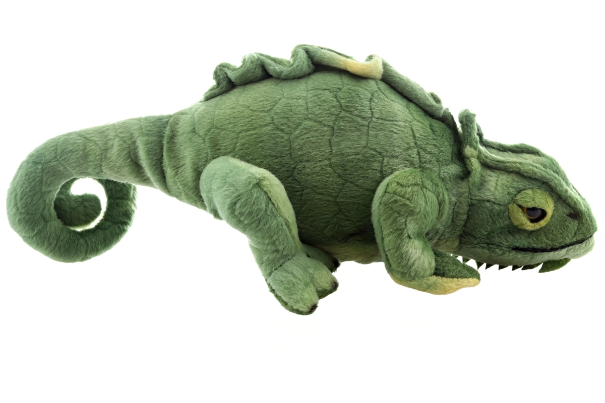 This eco-friendly plush chameleon delights with a realistic look featuring a characteristically shaped body, subtle dorsal details, and a curled tail. The extra-soft filling and velvety surface ensure comfy cuddles, while embroidered eyes and careful seams provide safety even for the youngest.