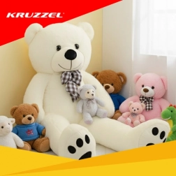 The giant KRUZZEL plush teddy bear with a height of 180 cm is the perfect cuddly toy and original gift for children and adults. It is exceptionally soft, features an elegant bow, velvety cream plush, and safe design suitable from 0+. Thanks to careful stitching, high-quality filling, and the option for hand washing, it will withstand thousands of hugs and be a beautiful room decoration and a faithful friend for years.