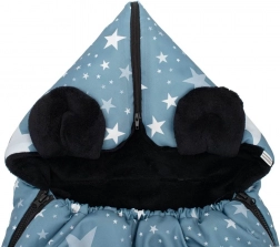 Practical New Baby winter footmuff with a star pattern ensures your baby warmth, comfort, and safety in both stroller and car seat. It has openings for 5-point harnesses, a zipper around the entire perimeter, and a tapered top section into a hood for maximum comfort. Thanks to the high-quality fleece inner layer and anti-allergic filling, it is ideal for cold days.