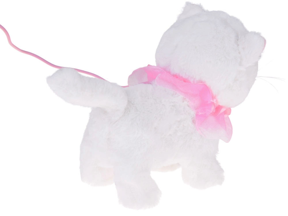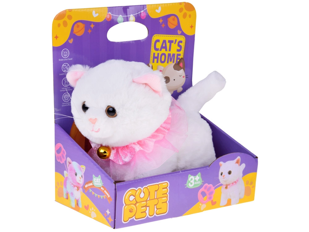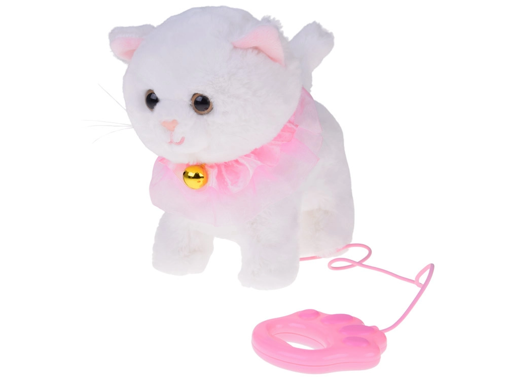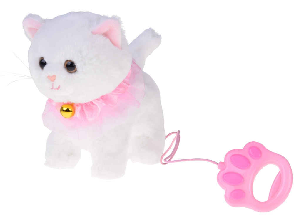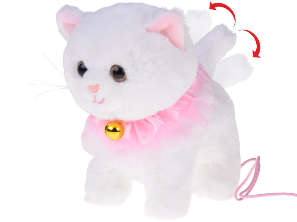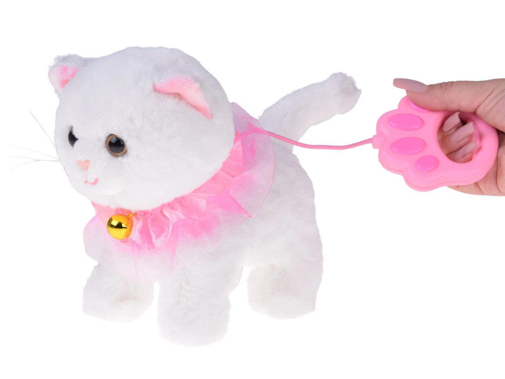 - Walks on a leash, meows, makes realistic sounds, wags its tail