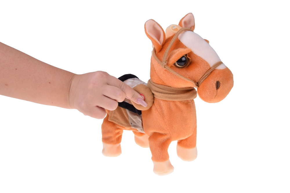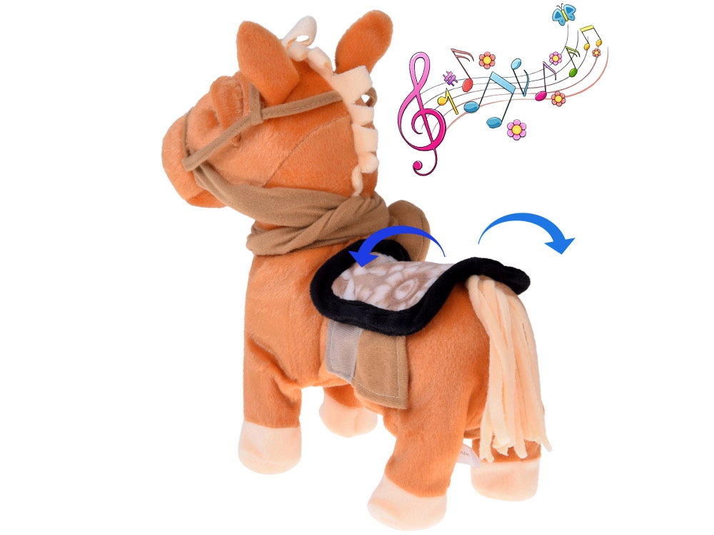 With a button press, the pony comes to life: it spreads its legs, walks, and performs a funny little dance accompanied by country music—a guaranteed mood booster.