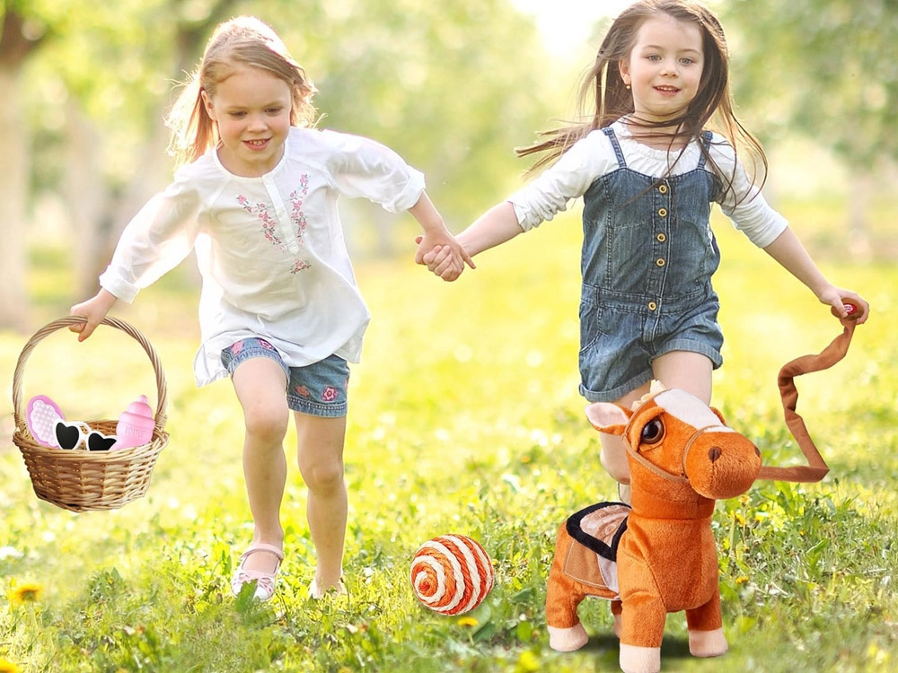 You can lead the pony with the included lead rope (longe line), practice “stable” skills, and spark wild-west adventures. Realistic sounds and rhythmic movements encourage a sense of rhythm, coordination, and active play.