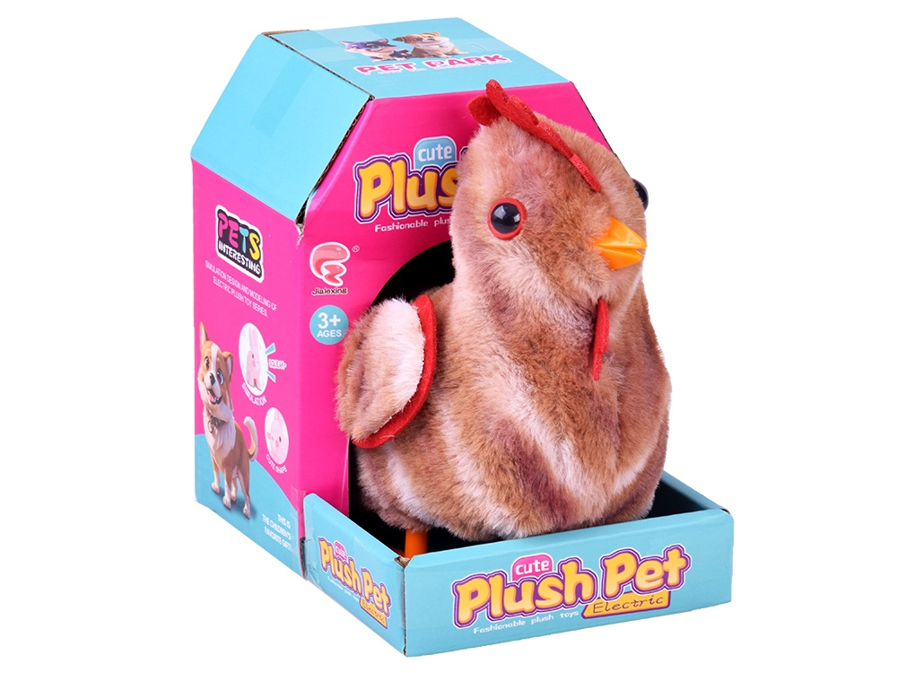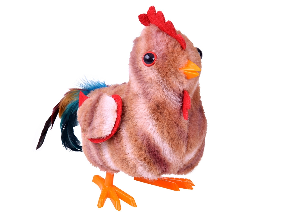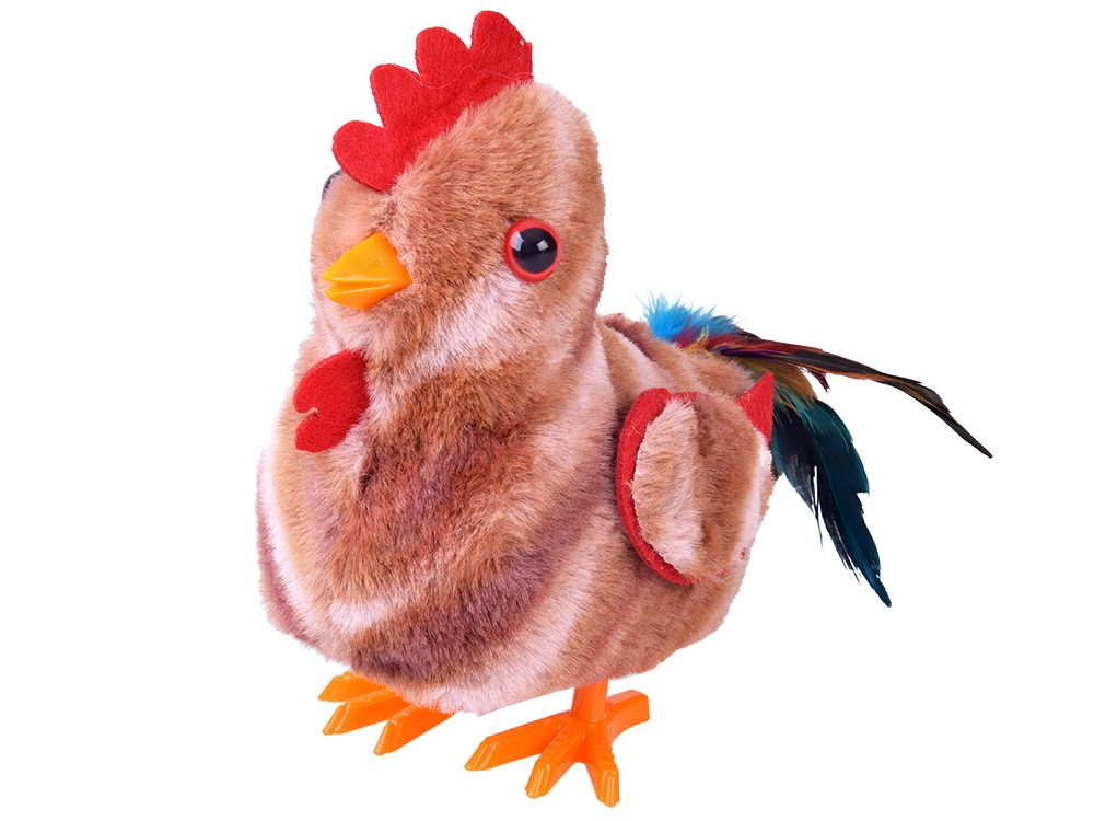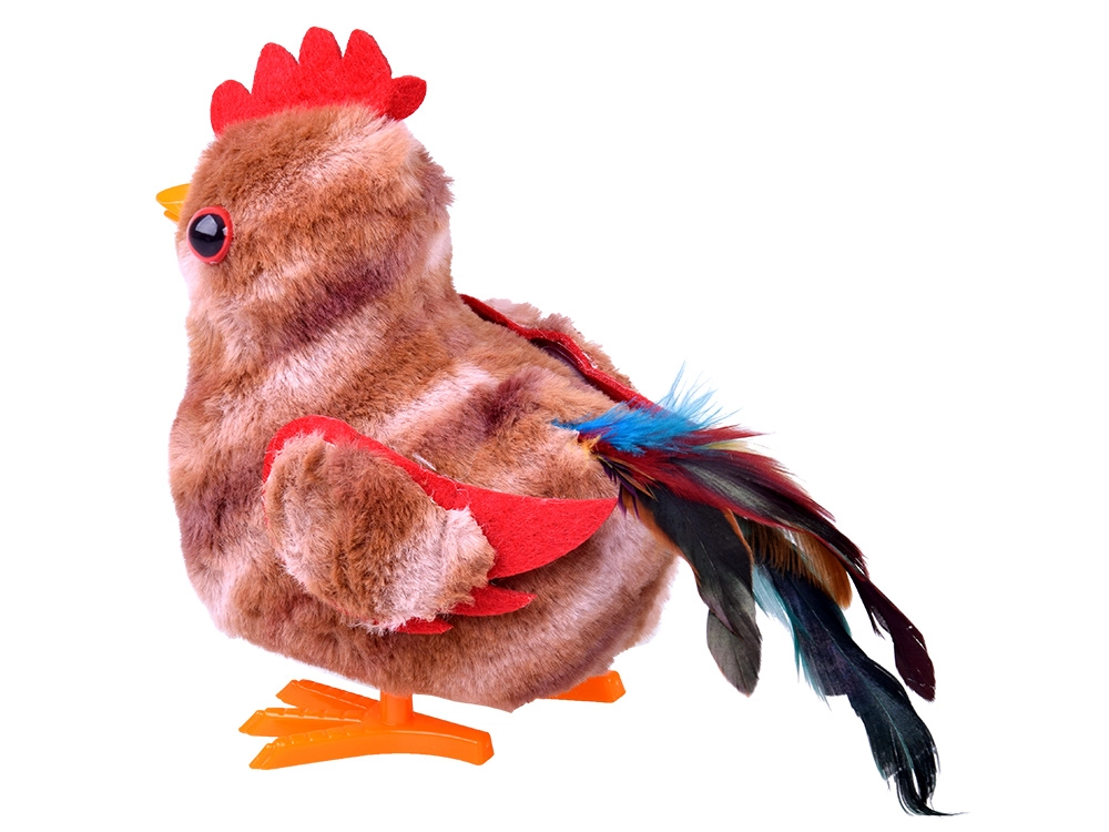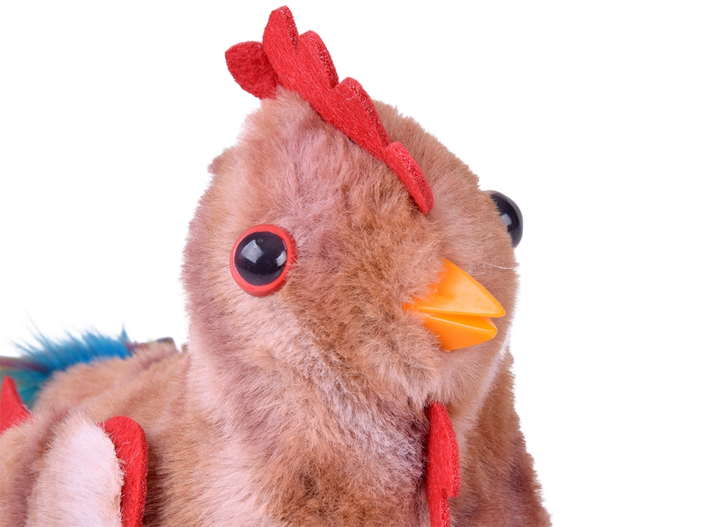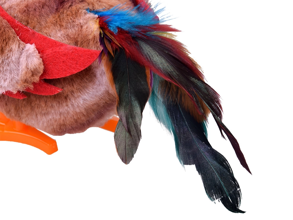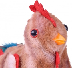 Pleasant plush, a red comb, and a colorful tail delight both to the touch and the eye – suitable for cuddling and decoration.