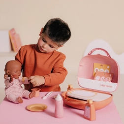 The adorable portable set from SMOBY is an ideal gift for little caregivers. In the compact case you’ll find 13 accessories for realistic doll care for dolls up to 42 cm. Children can feed, take temperature, and mimic everyday routines, fostering creativity, imagination, and social skills. The case serves as both storage and a play station—everything is neatly at hand at home or on the go.