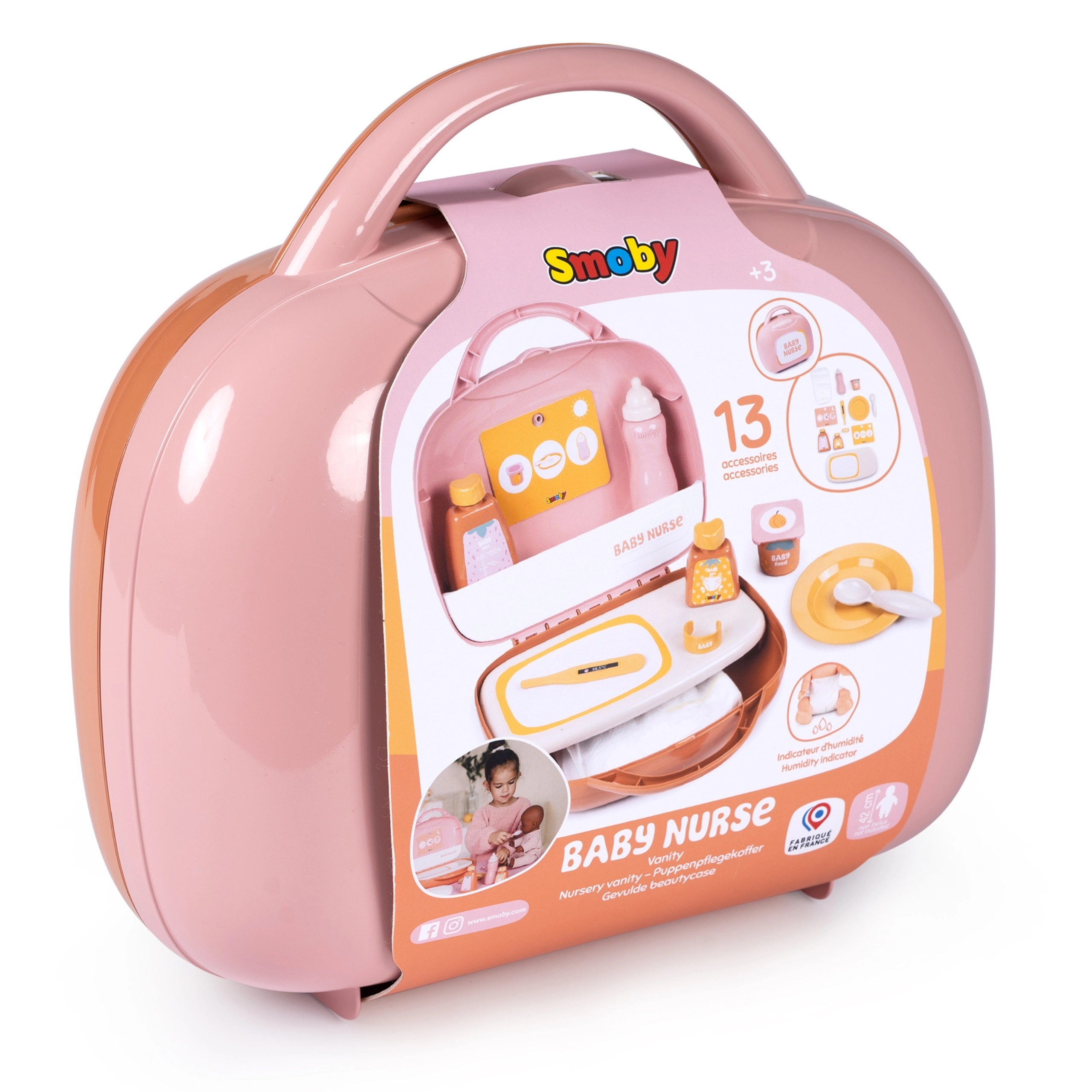 The practical Baby Nurse plastic case opens easily and keeps all accessories organized inside. Kids can play at home or outdoors without losing pieces.