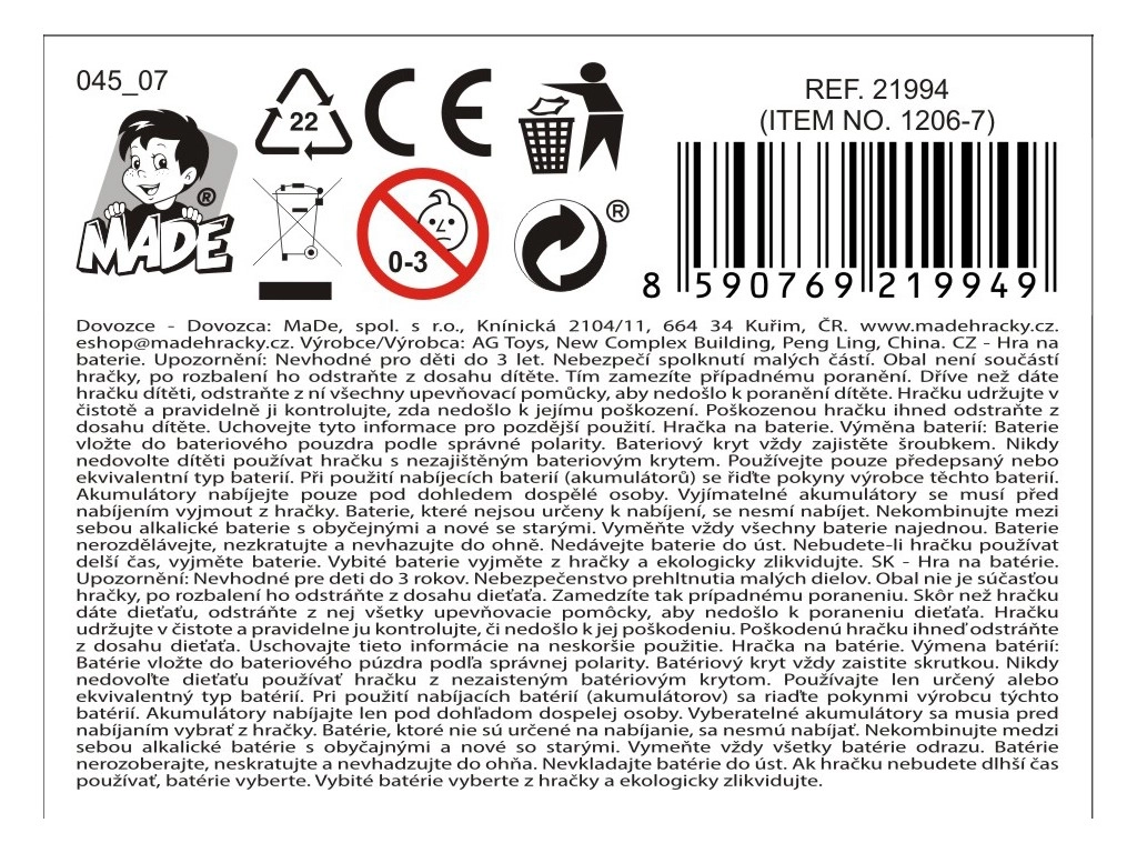 The package includes a plastic toy in a practical box. Three AAA batteries are required to operate (not included).