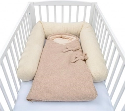 The practical NEW BABY Teddy swaddle and sleeping bag in beige is a modern take on the classic swaddle. Thanks to the zip fastening and tie straps, it wraps your baby perfectly, providing a sense of security and pleasant warmth. The TEDDY collection stands out with its striking bouclé texture, softness, and elegant look.
