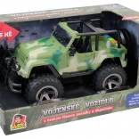 The 1:16 scale military jeep is an ideal toy for little adventurers. Thanks to the friction drive, it sets off with a simple push, while impressing with working lights and authentic Czech crew voices that add realism to play. The durable plastic design is suitable for everyday fun.