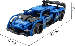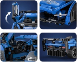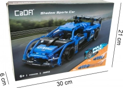 Build your own Shadow sports car from CADA with 380 pieces. The model features a pull-back drive, rubber tires for driving on various surfaces, and moving elements including a spoiler, steering wheel, and opening doors. The blue body with black details will delight both young and adult fans of building sets and cars.