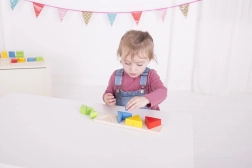 Generously sized pieces are easy to grasp; repeated placing trains fingers and hand–eye coordination. Ideal for the first skills of little explorers.