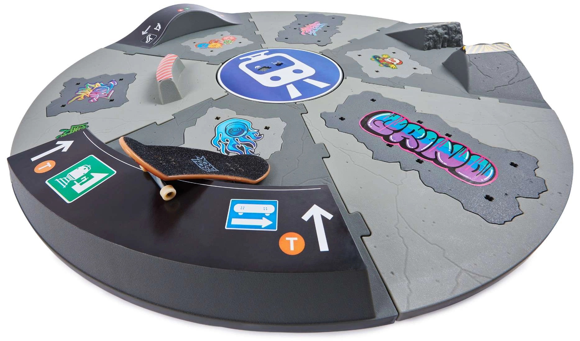 Build a compact skatepark on your table and show off the best of fingerboarding. The rotating base with segments, ramps, and railings enables smooth 360° rotation, so you can change riding direction and trick difficulty without rearranging the park. Ideal for practicing ollies, grinds, and manuals.