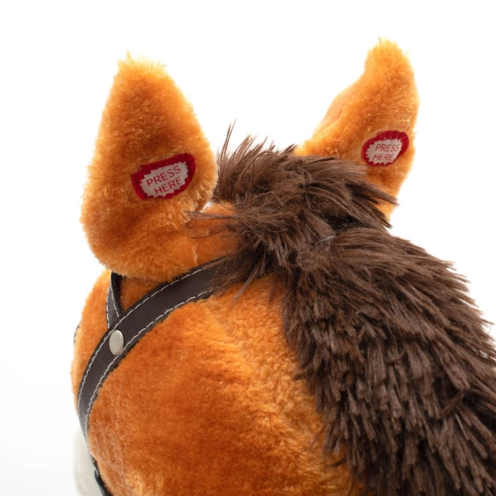 Press the ears and the horse plays a melody or makes trotting sounds while opening its mouth and wagging its tail – perfect for developing imagination.