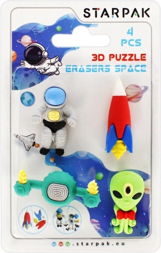 Fun and creative space-themed erasers will delight every little explorer. The individual parts can be detached and freely combined like a 3D puzzle, helping children develop fine motor skills, imagination, and creativity. The pack includes 4 erasers and is suitable for children aged 3+.