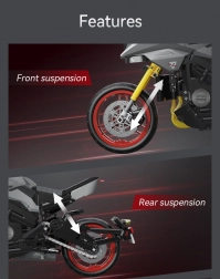 The transparent engine with moving pistons connected to the chain and rear wheel simulates real operation. The 3-speed gearbox and functional suspension take the building experience to the next level.