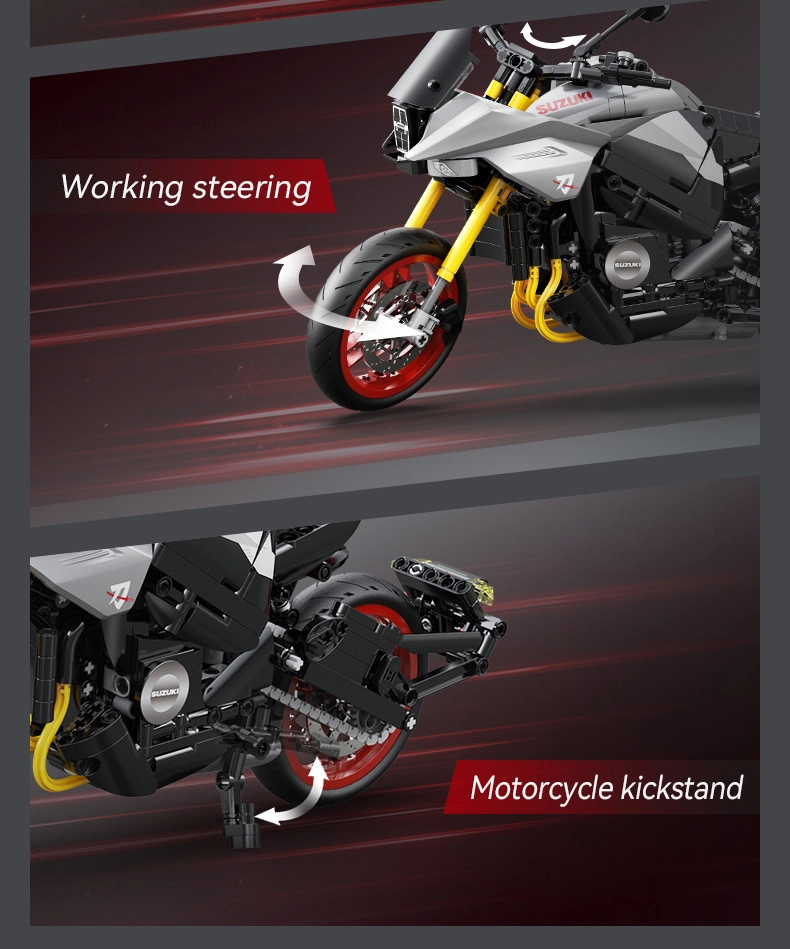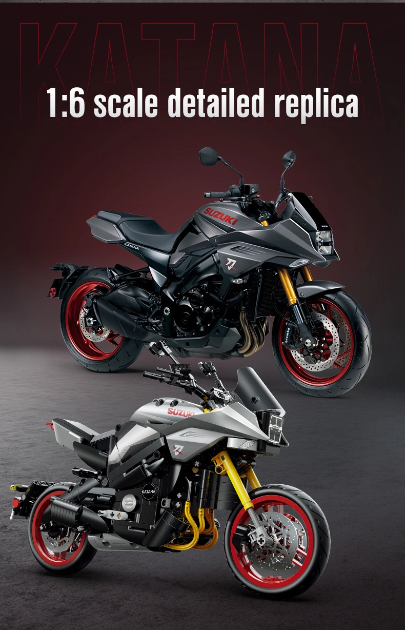 A detailed replica of the legendary SUZUKI Katana will delight every fan of technical building sets. The Make Your Bricks Move series develops fine motor skills, patience, and imagination while offering realistic functions that make the model an impressive collector’s piece.