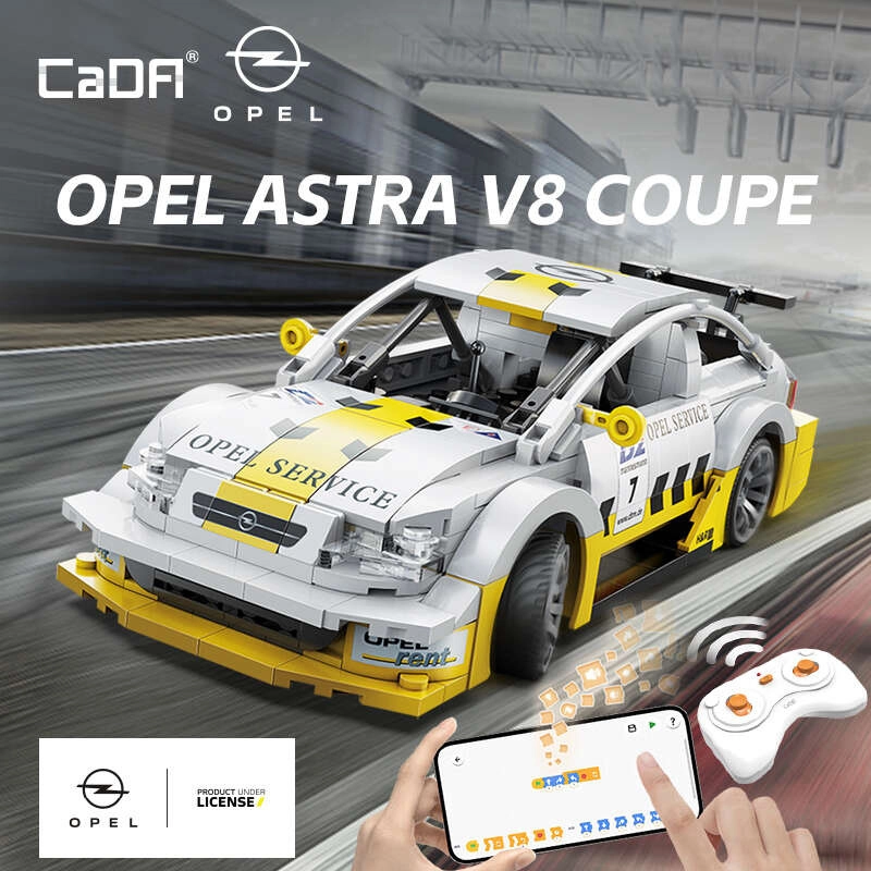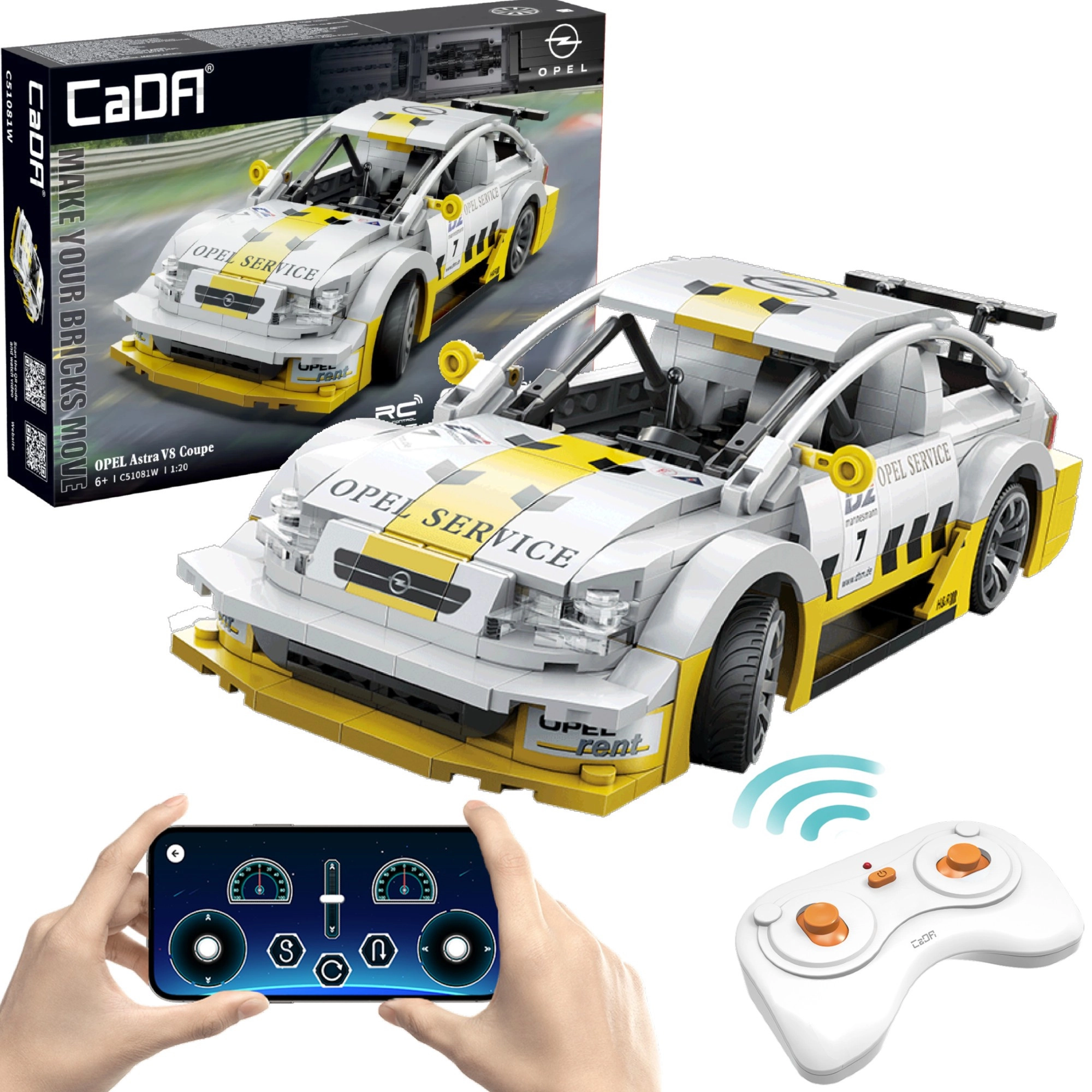 Enjoy building and driving with the detailed OPEL Astra V8 Coupe 1:20 scale model. The elegant white–yellow color scheme with realistic decals will delight collectors and kids alike. Thanks to Dual Mode control, switch between the 2.4 GHz remote and the mobile Bluetooth app—easily, quickly, and with fun.