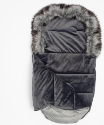 The practical and warm New Baby Lux winter footmuff with a soft fleece lining and a detachable faux fur trim keeps your child warm even in freezing weather. Thanks to the pre-stitched openings for 5-point harnesses, it is suitable for a carrycot and a pushchair, a car seat, and a sled. Full-length side zips make handling easy and turn the footmuff into a practical mat.
