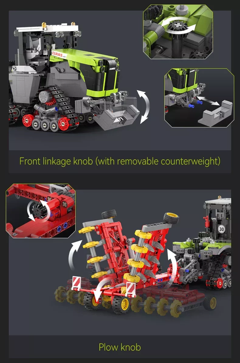 This impressive model delivers a realistic rendition of the CLAAS tractor with a triangular track layout, well-thought-out mechanical functions, and rich exterior and interior detailing. Thanks to the clear instructions, even younger builders can enjoy the build with adult supervision.