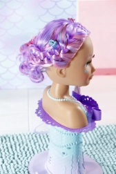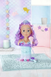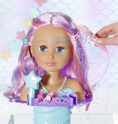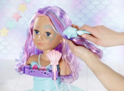 The BABY born Sister Mermaid styling head turns every bath into an undersea hairdressing salon. It attaches to the tub with sturdy suction cups, and removing the shell shower head activates the pump—water really flows when the head is in the water. The easily rotatable head with painted facial details invites make-up play and beauty-salon fun.