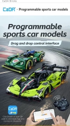 The PHANTOM WING sports car in iconic green delights with its detailed design and smooth ride. Thanks to dual-mode control, you can choose between a classic 2.4 GHz controller and a mobile app (Android/iOS) with multiple driving modes. Piece compatibility with other building kits ensures endless expansion options.
