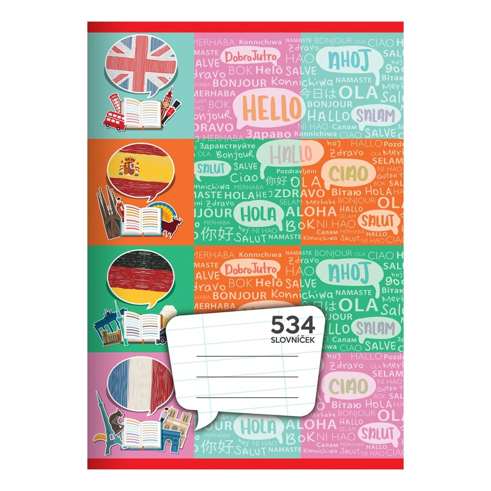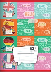 Practical A5 school notebook with 30 sheets for language learning. Features 8 mm ruling and 2 vertical columns for the foreign word and its pronunciation. Ideal for school and home study, available in multiple variants. Price is for 1 piece.