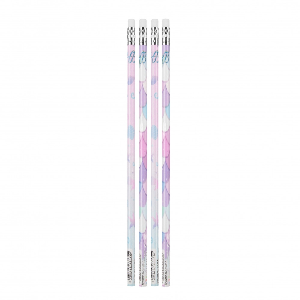Adorable mermaid-themed pencils will delight every young artist and schoolchild. The pack includes 4 pencils with an integrated eraser, a comfortable length of 19 cm, and HB hardness for everyday writing and drawing. An ideal school supply for children from 3 years.