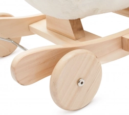 This elegant white swan with pink details and a golden crown will enchant little princesses and their parents. The toy is made from soft, pleasant materials, while the wooden base with wheels allows easy switching between rocking and riding. The integrated melody supports sensory development and adds a new dimension to play.