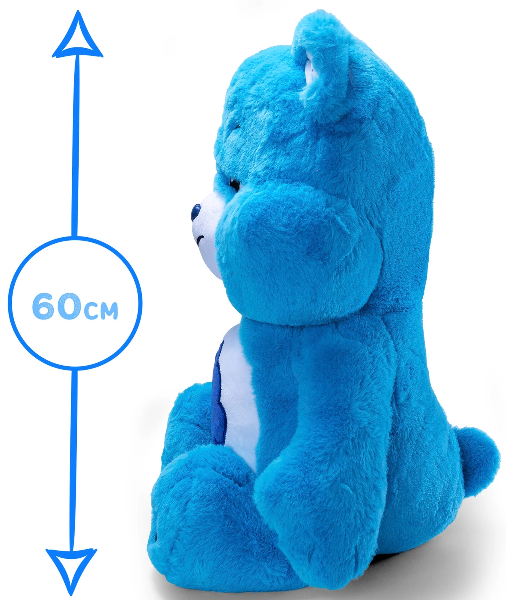 Adorable blue teddy CARE BEARS Grumpy Bear in 60 cm size is an extra soft plush toy with safely embroidered details. On its tummy it has the iconic rain cloud with a heart symbol, ideal for cuddling, play, and as a gift for children from 3 years.
