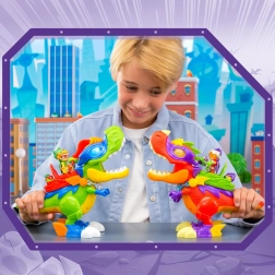 Press the tail to activate the chomping action—the jaw opens and V‑Rex “swallows” the opponent. The signature T‑Rex design in bold colors with futuristic details underscores its fierce super‑villain look.