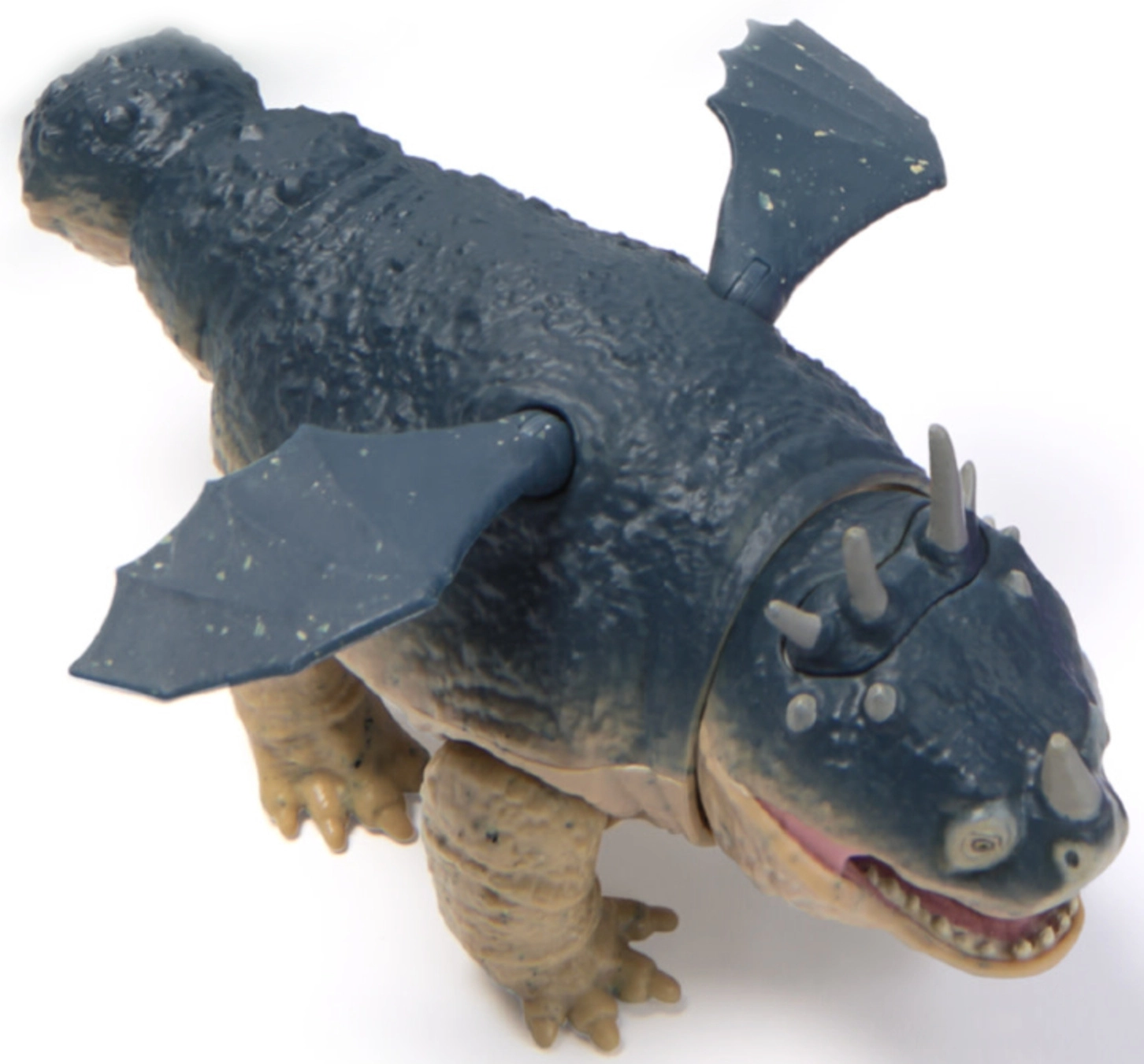 Detailed texture of “rocky” scales, horns, and an open, fang-filled mouth faithfully reference the HOW TO TRAIN YOUR DRAGON universe.