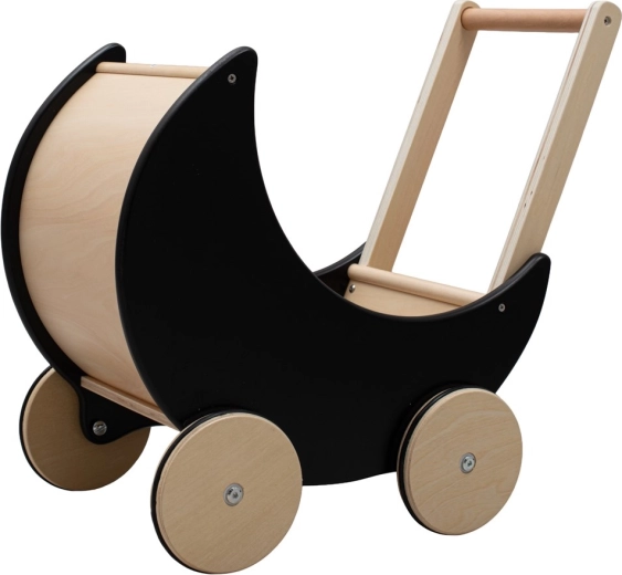 Stylish wooden 2-in-1 stroller and walker Montessori BABY MIX in elegant black supports first steps and motor-skill development. It offers stable support while walking, plenty of space for play, and safe design with rounded edges. Ideal for little explorers from 12 months.