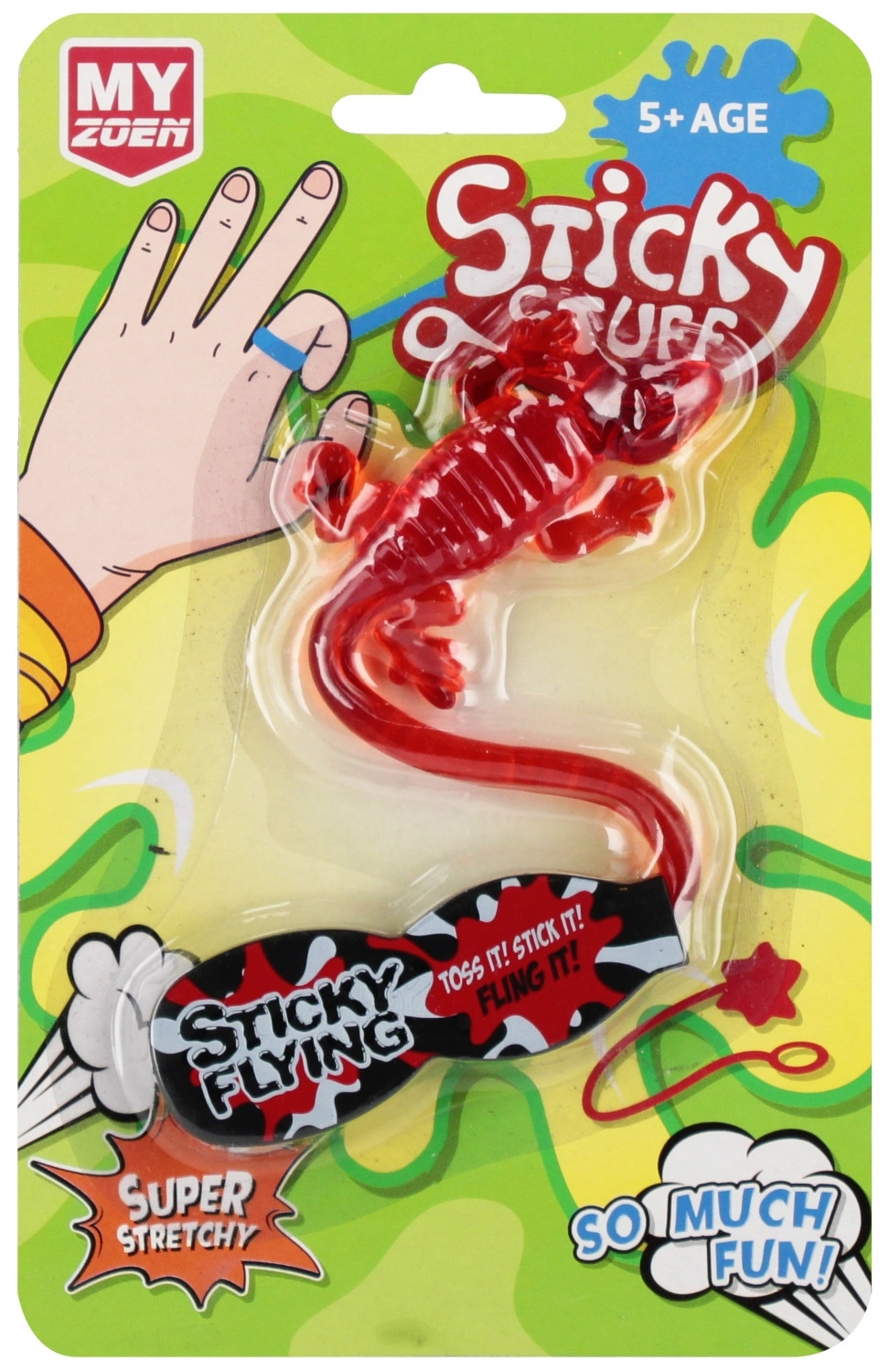 Discover the sticky lizard that will keep kids entertained for hours. Just stretch it, throw it at a smooth surface, and watch it cling and slowly glide down. An ideal small toy for home or on the go.