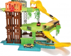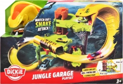 Set off on a thrilling ride through the jungle and explore all three levels of the track, where a giant snake lies in wait. The Dickie Toys racing track is designed for dynamic play with smooth descents and climbs, and thanks to the moving elevator, you can easily move the car between levels.