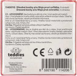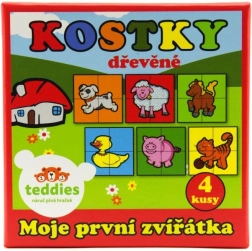 Discover fun and learning with TEDDIES wooden picture blocks. The set includes 4 sturdy blocks that can be arranged into up to 6 different pictures of domestic animals. The toy develops fine motor skills, logical thinking, and imagination, and thanks to the durable wooden design it stands up to everyday play. Made in the Czech Republic.