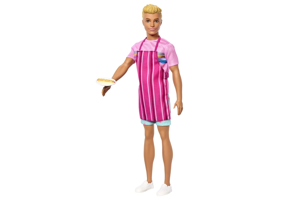 Dress Ken in the striped apron and let him serve favorite beach treats. With movable joints, it’s easy to pose Ken in different ways and bring every tale to life.