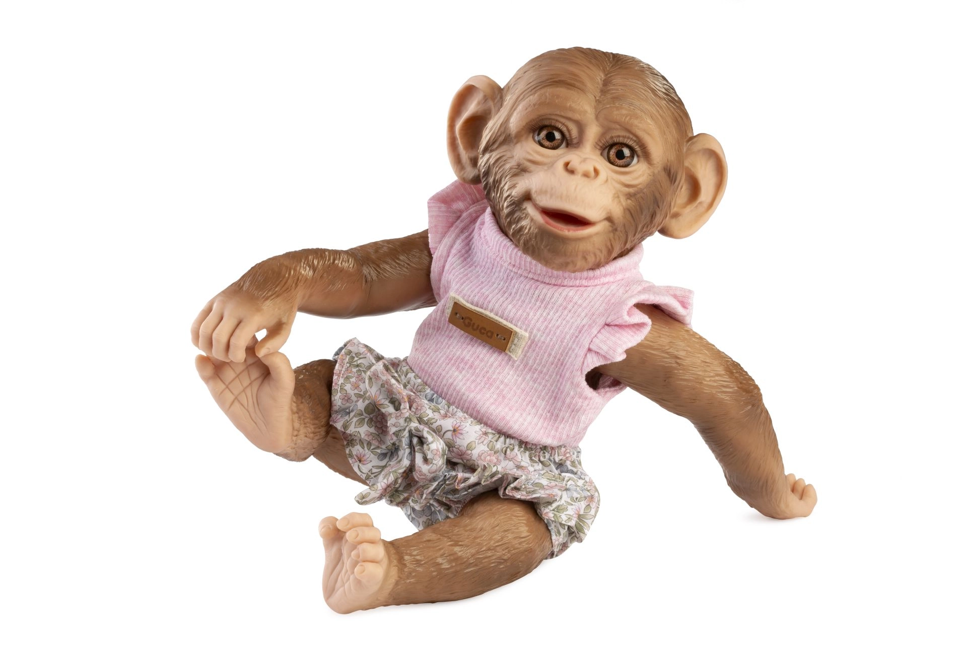 Treat your Reborn baby monkey to a fresh look with this delicate 32 cm outfit. The pink top with decorative ruffles and floral bloomers match beautifully and are easy to put on. The practical pacifier with strap supports realistic role play and caring for the “baby.”