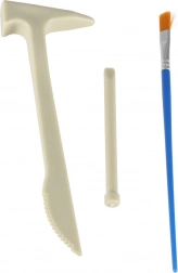 - 1× gypsum egg with 12 dinosaur figures, 1× chisel, 1× hammer with knife, 1× brush, information card (EN), manual (PL)