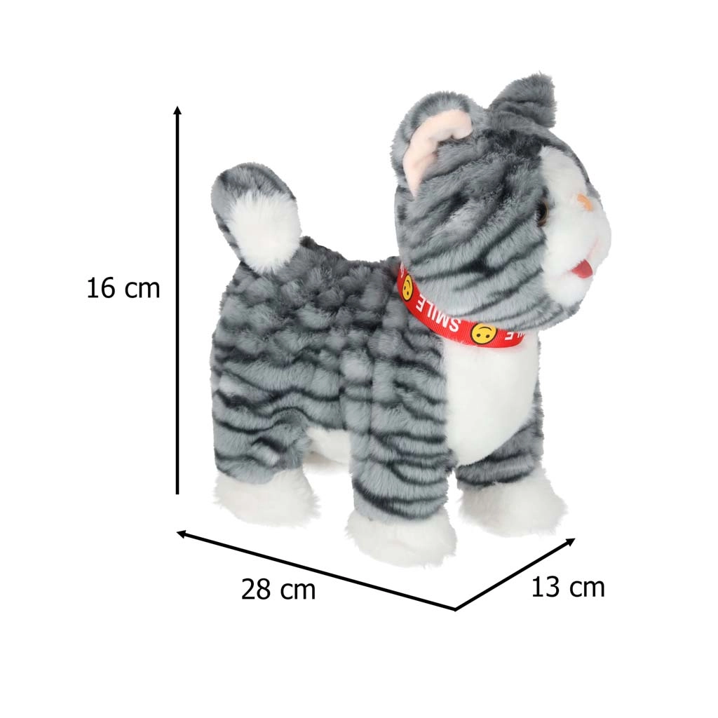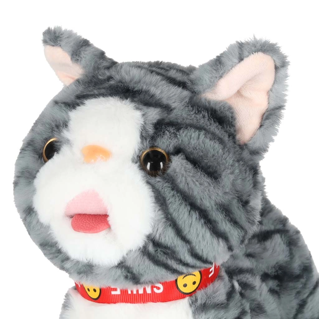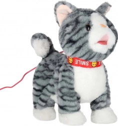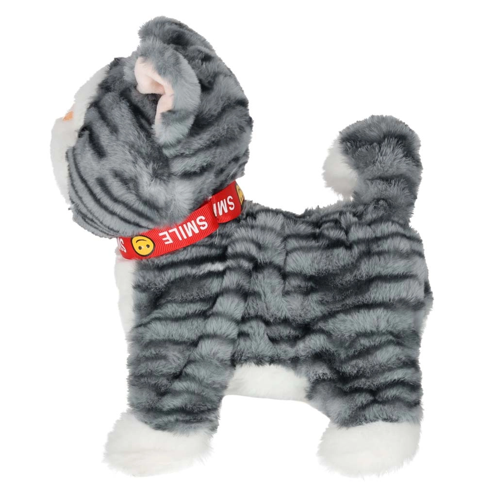 A cute interactive plush cat on a leash brings kids hours of fun. With the press of a button it walks forward, meows, wags its tail, and moves its tongue. The soft grey striped fur invites cuddles, while play also teaches pet care. An ideal gift for children aged 3 and up.